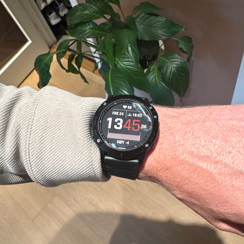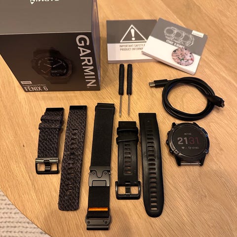 Selger min godt brukte Garmin Fenix 6 Titanium Sapphire. Jeg har vært veldig fornøyd med funksjonene og byggekvaliteten - veldig robust. Den er mer enn nok for de fleste.