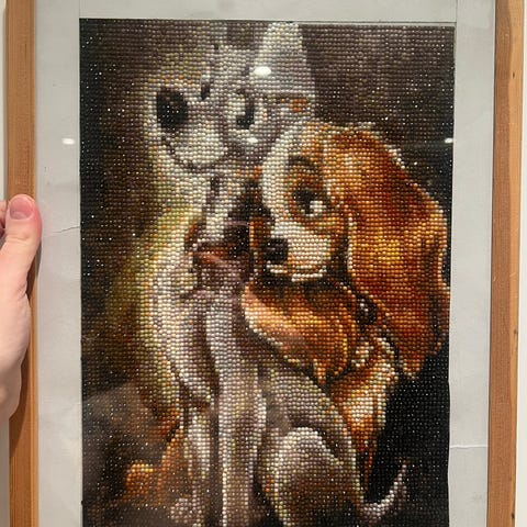 Selger paint-by-numbers pakke med lerret, ramme, maling, pensler og kiler.