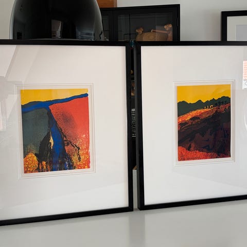 Litografi av Eva Langaas. « Røsslyng»Mål ca 80X63 cm med ramme. Må hentes