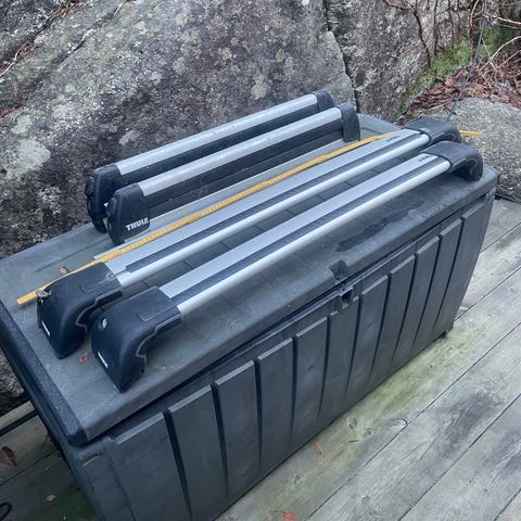 Takboksen er romslig og passer til ulike BMW-modeller. Den kommer med tilhørende takstativ.