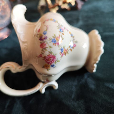 Nydelig sett med vintage porsgrund servise selges samlet. Rosa blomster og gullkant. De er i god stand, men gullkant fargen er litt slitt noen plasser, og noen av de har helt små "hakk" i kanten.