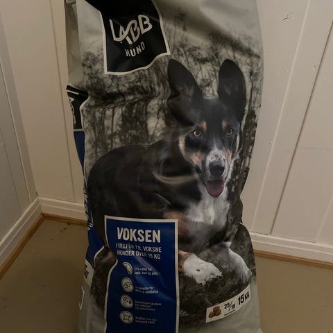 1 sekk med Kvalitetsfôr fra Acana (valp/junior-fôr) selges for 900,-