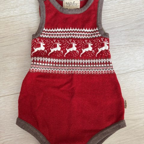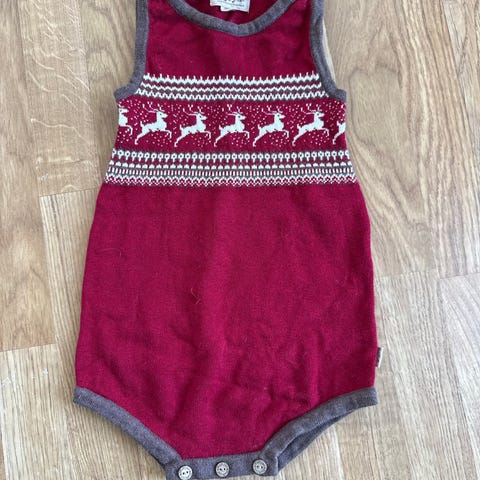 Memini romper i str 62. Utrolig fint julemotiv med juletrær. Grå og rød farge.