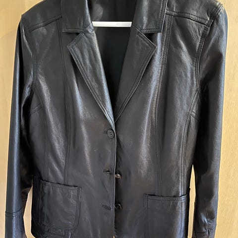 Sort skinnjakke i str 38, sydd som en dressjakke look