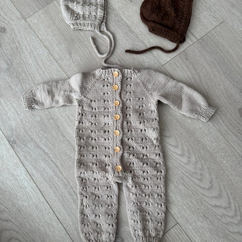 Strikket romper og kyser str 0-3 mnd