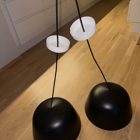 Ledningene er rundt 2,5 meter lange. Ringene på bildet medfølger.