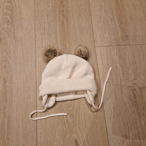 H&M lue for barn i størrelse 86/92, beige farge. Luen har fleece og knyting under haken, egnet for unisex bruk. Vi hadde brukt den flere ganger fint.