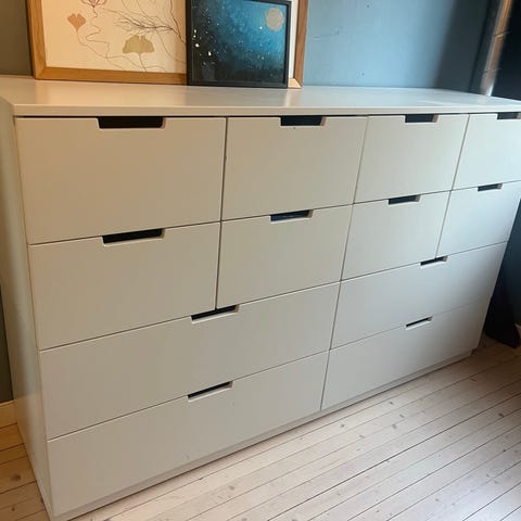 Vi selge kommoden pga flytting til utlandet. Fungerer som det skal, noe brukt merker men ikke skader. Henter fra boden i kjelleren i Schweigaardsgate. Ny pris på IKEA kan fort koster over kr 7000