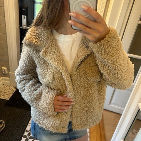 Selger denne fuskepelsjakken i xs fra H&M. Har hatt den i noen år, men brukt veldig pent!