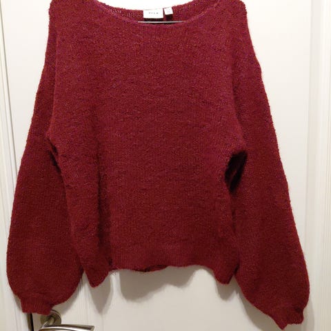 Selger en hjemmestrikket genser i fargen burgunder. Ubrukt.