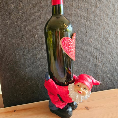 Funksjonell julefigur til julebordet, holder tannpirkere på plass i kurv på ryggen. Denne måler 9 cm
