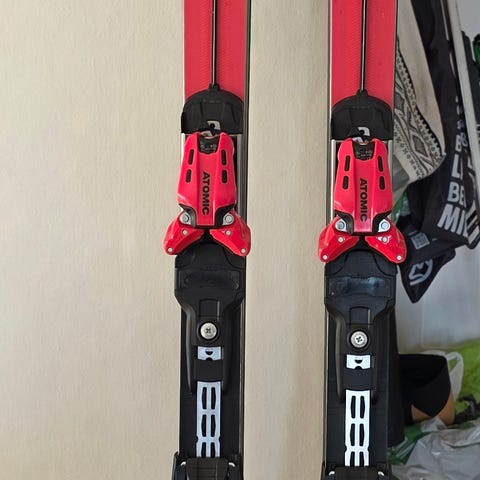 Fine Atomic S9 (SL) 155 med Var 16-bindinger, lifters og delt plate. Delt plate bidrar til en mykere ski, med en jevnere flex, perfekt for yngre / lette løpere. Skiene er godt brukt, og har lite kant igjen. Perfekt oppvarming, skli eller forsesongs ski. Satt opp av APC. Skiene står med voks (bilde av såle er med voks).