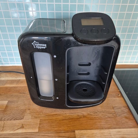 En maskin som tilbereder morsmelkserstatning og gir rett temperatur til barnets flaske.