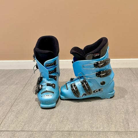 KID Lange skistøvler i blå farge, størrelse 18,5. Laget med justerbare spenner for god passform.