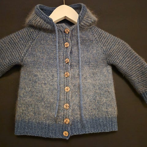 Pent og lite brukt strikkejakke i fin blåfarge.