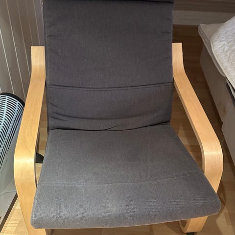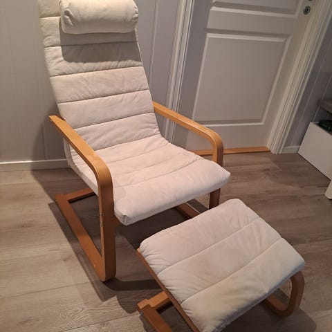 Må ha nytt trekk/pledd i stolen. Noe kort i setet. I god stand forøvrig. God og sitte i. Sendes ikke.