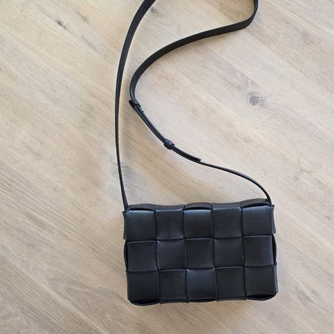 Vurderer å selge min Bottega Veneta Chain Padded Cassette i fargen fondant med gull harware. Vesken har et unikt vevd design og en kraftig gullfarget kjede som stropp - et skikkelig statement piece.