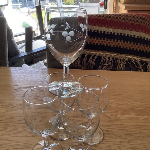 4stk retro glass drikkeglass med frukt motiv selges samlet. Noe bruksmerker kan forekomme. Selges som de er. Se bilder