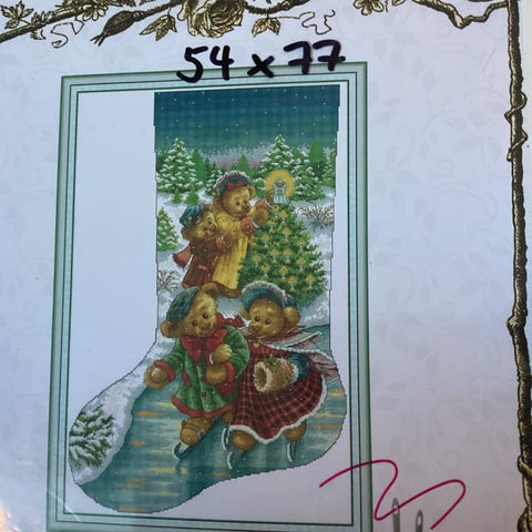 Ny, vakker, påtegnet og komplett broderi pakke/ julestrømpe. 34x49cm. SENDER GJERNE.