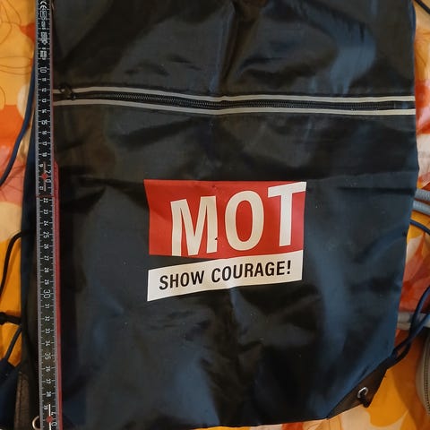 Egen lomme til feks fotballsko, og flere praktiske smålommer. Selges billig, den er i god stand bortsett fra det kosmetiske der den er oransje/rosa.