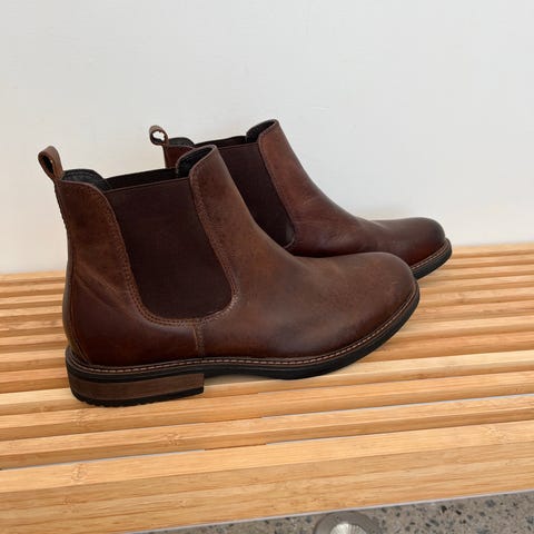 Jean Paul støvler i semsket skinn, brun farge, herrestørrelse 45. Støvlene har elastiske sider for enkel av- og påtaking og en robust såle som egner seg til daglig bruk.