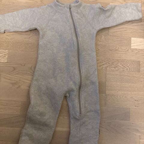 Mikkline Beige Ullfleecedress str. 92 Unisex. Laget i et mykt materiale, egnet for barn. Dressen er stor og kan nok også brukes som str. 104. Kan også brettes over ben og hender for enda bedre varme.