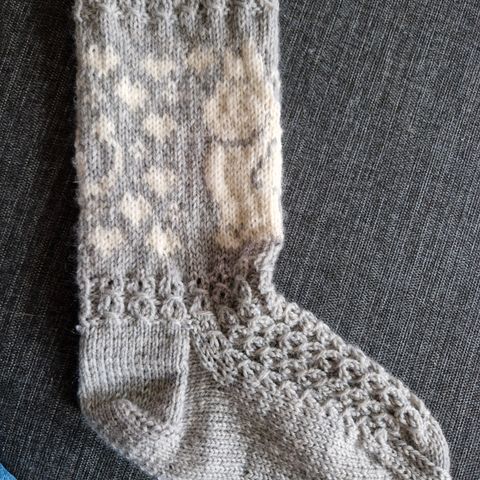 Strikket i Viking sportsragg. 300,- for lue, 300,- for votter og 300,- for sokker. 800,- for alt tilsammen