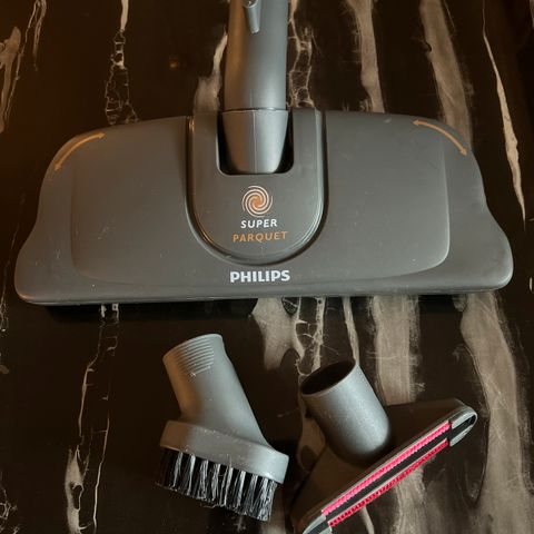 Philips støvsuger i rød farge. Modell FC 9161. Leveres med slange, munnstykke og teleskoprør.