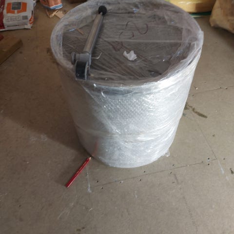 Bryggekar, kjølekar med tappekran, kjølespiral, CO2 regulator, trykkmåler og tilkoblingsslanger. Corneliusfat. Materialet er rustfritt stål, og systemet inkluderer slanger og koblinger for tilkobling til gassbeholder og væskekilde.
