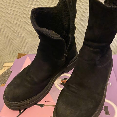 Vinterstøvler for dame i størrelse 39, beige farge. Støvlene har snøring foran og en solid hæl. Sålen har mønster for bedre grep. Materiale ser ut til å være syntetisk eller lærimitasjon, egnet for vinterbruk.