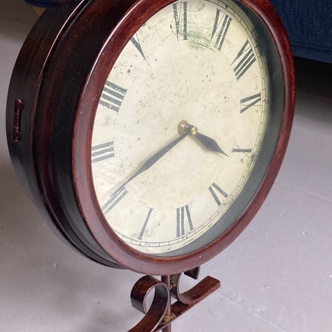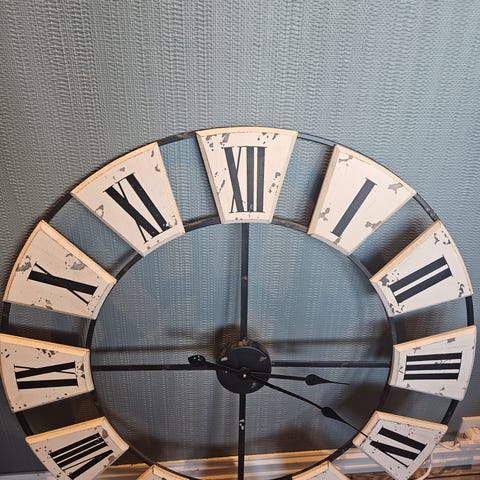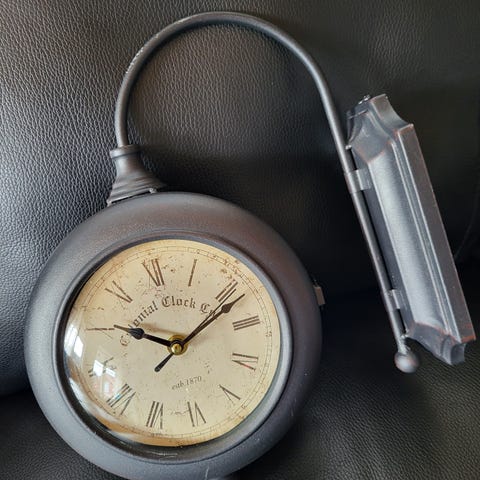 Har ei stor og dobbel ubrukt vegg klokke for salg. Vegg feste er 29 cm høgt , å diameteren på klokka er 22 cm , å 9 cm i tykkelse . Å der er klokke på beggesider å som bruke 1 stk AA batteri på kvar klokke enhet . Denne er ubrukt å ligg i eske , kun åpna opp for blitt tatt bilete av .
