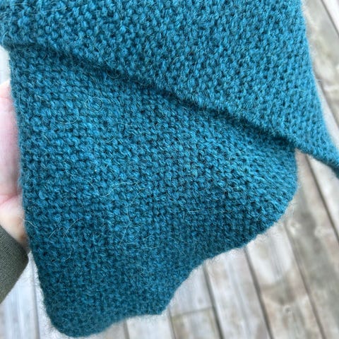 2 fine, grønne halser, 1 vid som er strikket i bladmønster ibet herlig, mykt garn