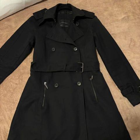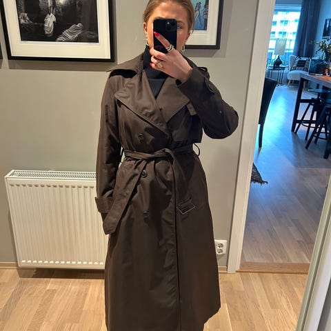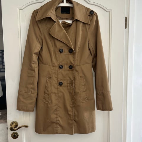 Trenchcoat fra Zara i nydelig brun farge. Str s/m. Hel lengde 90 cm (målt bak) ermlengde 48 cm ( målt under ermene. Litt slitt beltespenner.