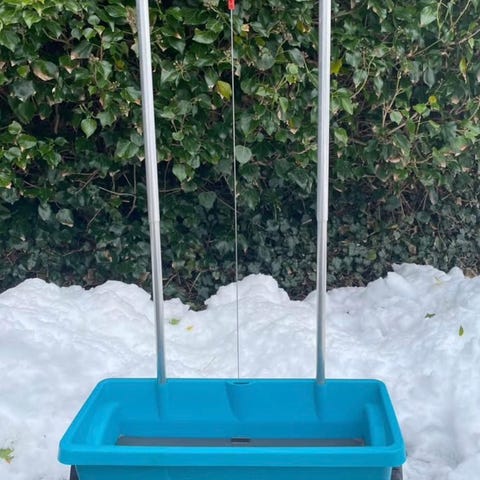 Spredevogn brukt for å fikse opp plenen. Brukt to dager
