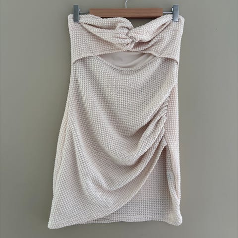 Så fint kjørt, med strikk i livet, og knyting så man får en fin fasong . Aldri brukt.