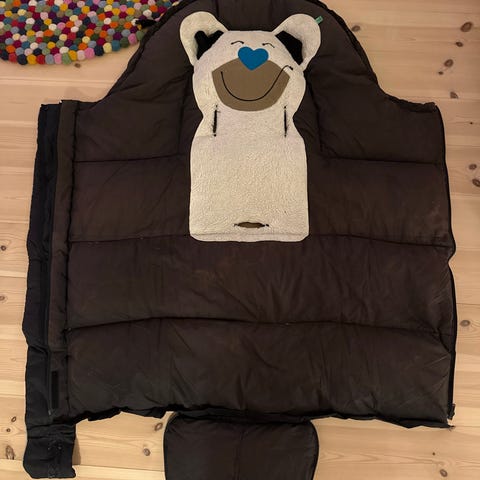 Fint brukt til ett barn og renset med tekstilrensemaskin. Ingen anmerkninger. Fleecefor. Passer best til høst og vår, men kan også brukes på vinter med ekstra ullpledd.