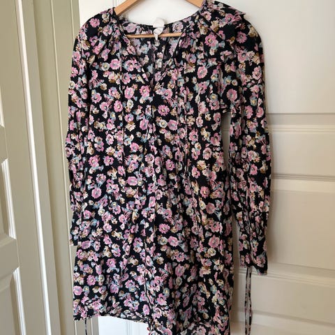 H&M Hverdagskjole i oransje farge, størrelse S. Kjolen har lang erm, omslagsdesign med knyting i midjen,