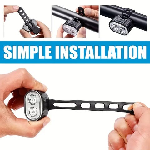 Blink/Stroboskop-Lysfunksjon. USB-Oppladbar. Lett å montere.