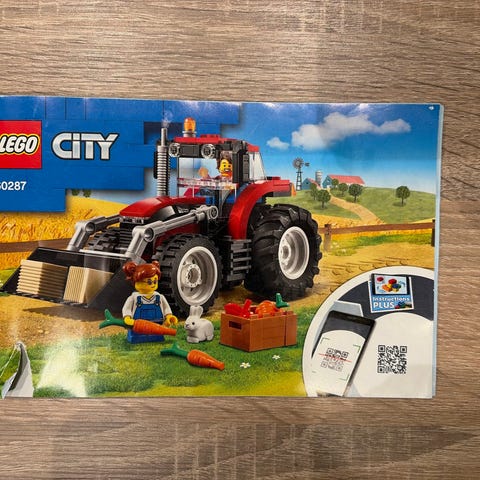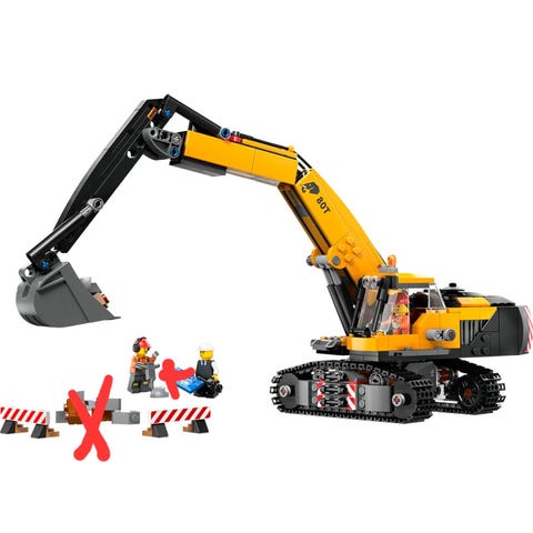 LEGO City 4543 gravemaskin og tilhenger i gul og rød farge. Settet består av en gravemaskin med bevegelige deler. Merk: tegninga har huller etter hullemaskin, og mangler ett klister!