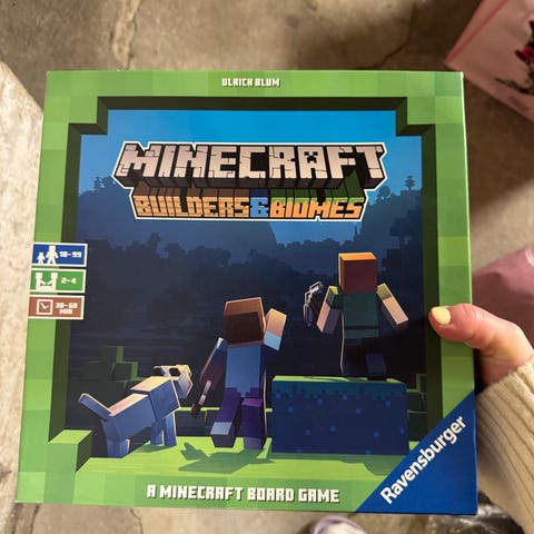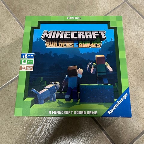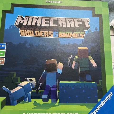 Ravensburger Minecraft Builders & Biomes Brettspill for 2-4 spillere, anbefalt alder 10-99 år. Spillet varer i 30-60 minutter. Temaet er basert på Minecraft-verdenen med bygging og utforsking av biomer. Brukt et par ganger bare. Perfekt julegave