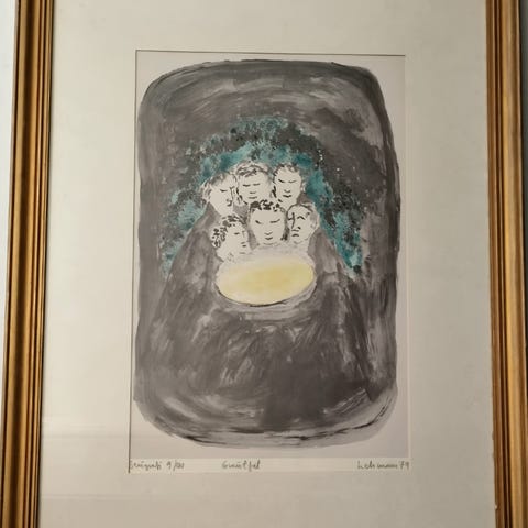 55* 48 cm med gullramme. Olje på lerret