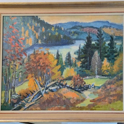 Arthur Emil Johansen mørk elv. Oljemaleri