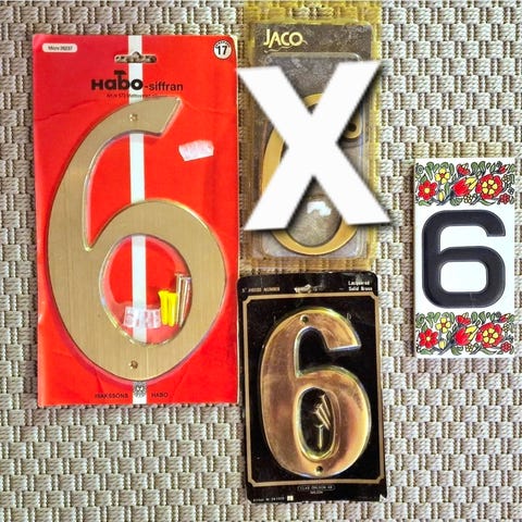 Keramiske husnumre fra Italia bestående av tre fliser med tallene 9 og 0 samt bokstaven B. Flisene er håndmalte. Kr 75 pr stk.
