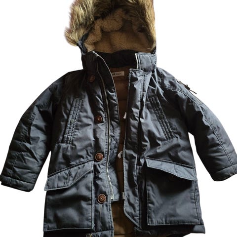 Pent brukt jakke med avtagbar hette. Enhjørninger på jakken er skinnende og fine (ser mye bedre ut enn det jeg har klart å få med på bilde).