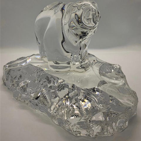 Stor, flott isbjørn i opalin glass. Lengde 7cm, på det høyeste 10cm. Signert Hadeland W.J. (Willy Johansson)