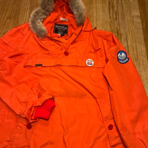 Flott fjellanorakk selges. Like god til både skiturer og fotturer. God hette med avtagbar pelskant, stor brystlomme med glidelås, og lomme på magen. Passer både til damer og herrer.