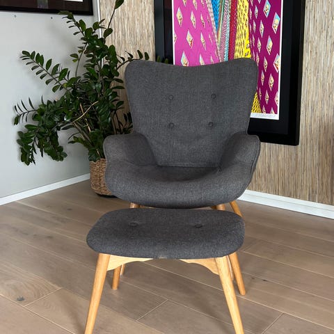 2 stk Recliner TANKEDAL m/ fotskammel- mørk grå stoff selges.
