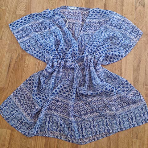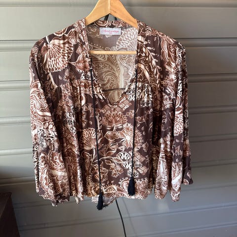 April Vintage bluse i flerfarget mønster, størrelse One Size. Laget av 100% viskose. Blusen har lang erm og knappelukking foran. Produktet er laget i Italia.