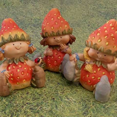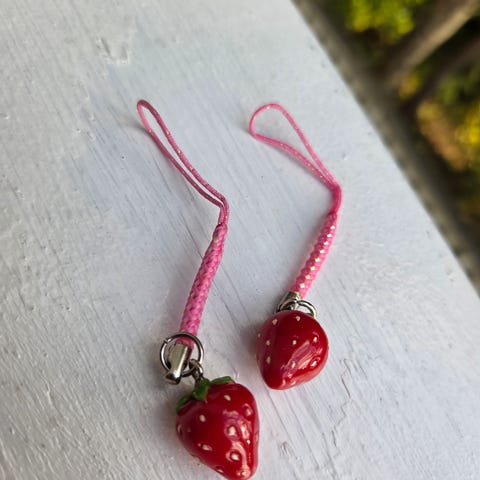 Oppheng til for eksempel grytekluter og jordbærkrem med kunstige jordbær i.