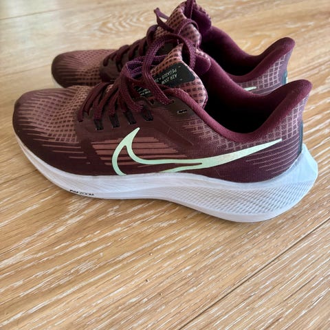 Nike Air Zoom løpesko. Størrelse: 38, men de er litt små i størrelsen. Veldig gode sko, de er lite brukt fordi de dessverre ble for små for meg. Materialet består av pustende tekstil og syntetiske elementer for komfort og støtte under løping.